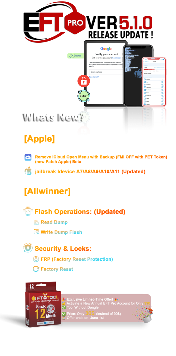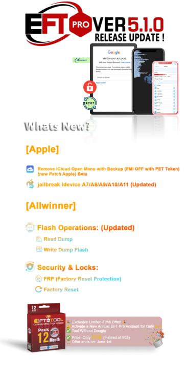 EFT Pro Dongle V5.1.0 is released Remove Icloud Open Menu with Backup (FMI OFF) EFT Pro Dongle Update V5.1.0 Build 003 is released : Whatโs New in This Update? [Apple] [Allwinner] [Apple] http://img.easy-firmware.com/images/22138431519182808952.png โก๏ธ More features and supported models coming soon โ stay tuned! โก๏ธ Update your dongle now and enjoy the latest features instantly! โจ OTA Update โ No Manual Download Required! For New User Download File http://img.easy-firmware.com/images/73943536297696117131.png Kind Regards, Easy Firmware Team Get Now EFT Dongle From Nearest Distrubutor/Reseller Here http://img.easy-firmware.com/images/45100440143954281502.gif http://img.easy-firmware.com/images/24832926269858437136.pnghttp://img.easy-firmware.com/images/00499206120582122962.pnghttp://img.easy-firmware.com/images/29320866232176063531.png- UnlockTool 2025.05.20.0 Released Update || OPPO & REALME Models